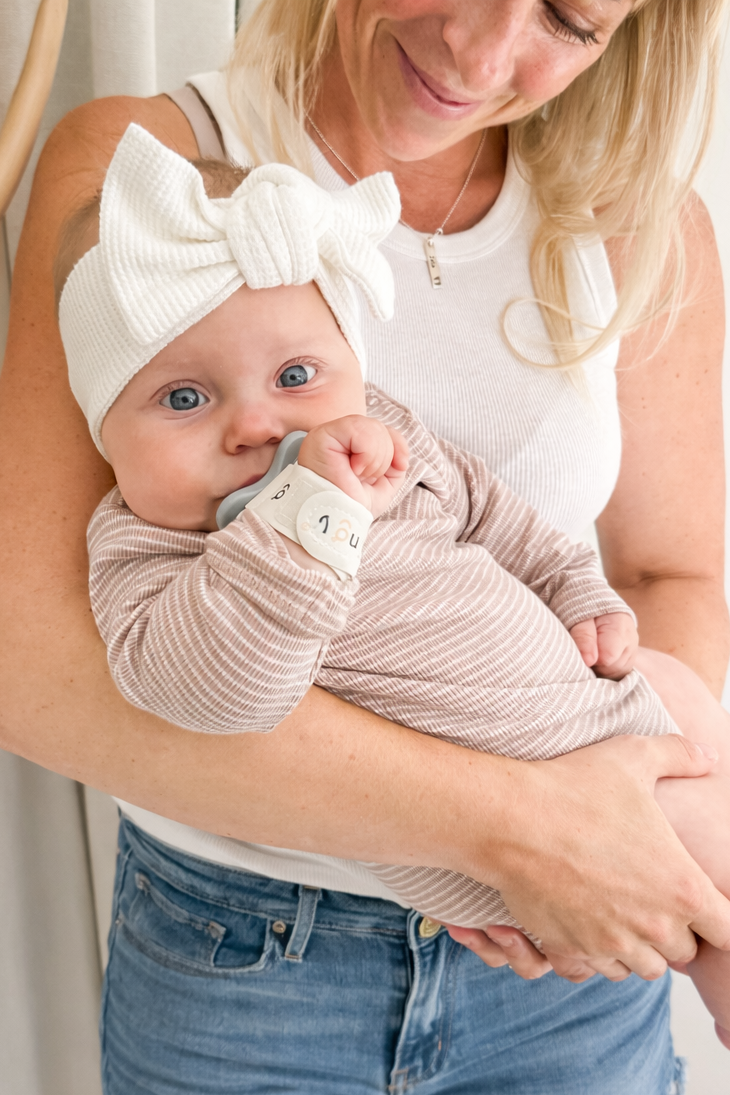 “There was an age stretch where other options - pacifier stuffed animals, pacifier clips, etc - just didn’t help because developmentally they were still not able to locate it or follow the string to find the pacifier. With the Ingy Bingy Band - they knew exactly what to do with that! It saved us so much time and frustration with the never-ending pacifier task. And it allowed them to self-soothe anytime they needed! Happy babies = happy parents.”