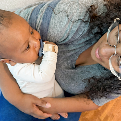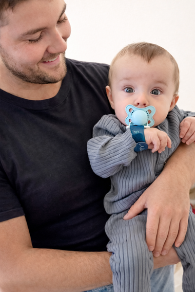 "We have tested quite a few pacifiers (IYKYK) so I LOVE that this wristband attached to any paci. We were able to teach our baby how to use the ingy bingy band pretty quickly and relieved she can now sooth on her own."