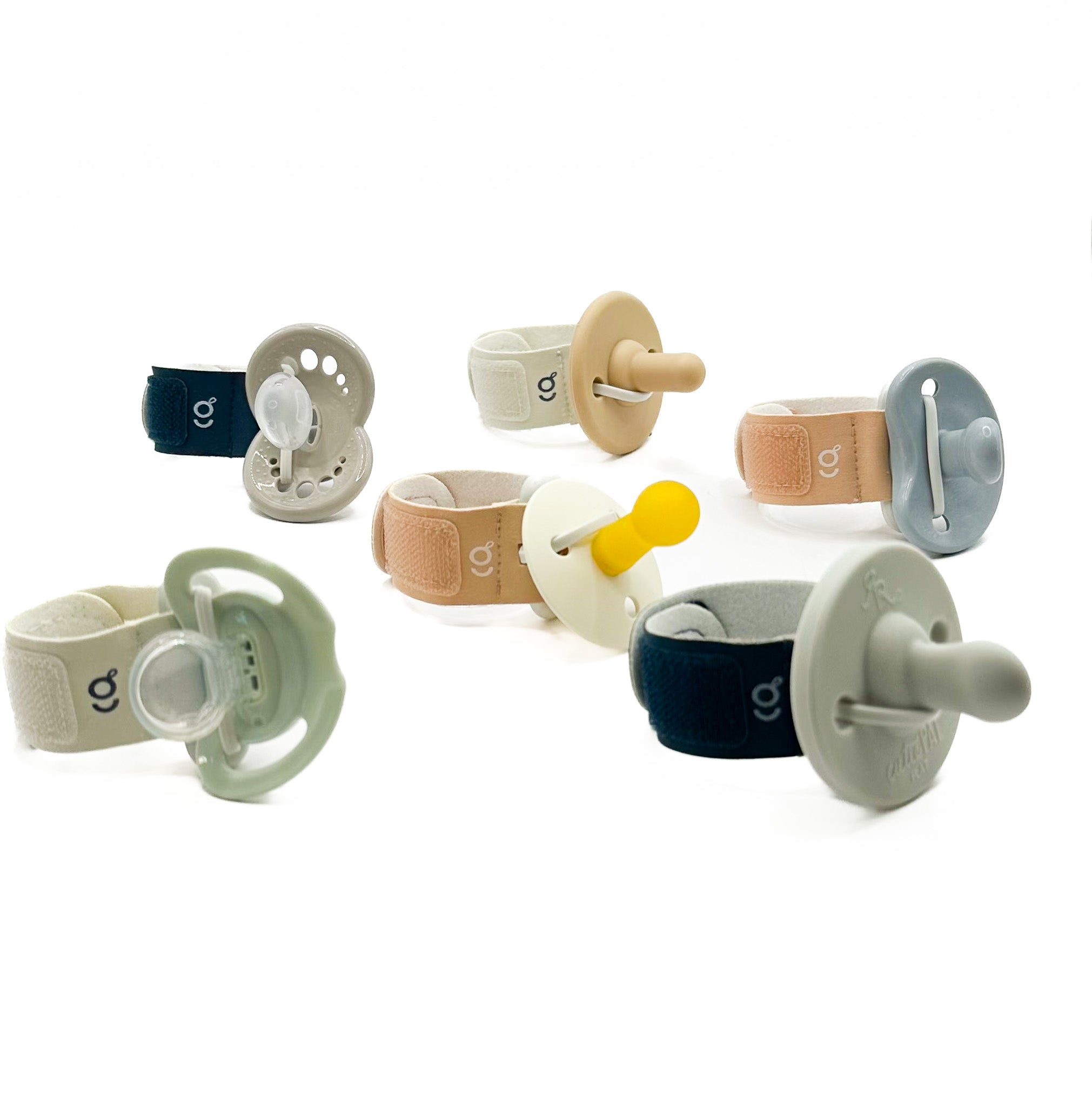 The Ingy Bingy Band comes in two different styles: Pacific & Sequoia. With each design, the t-strap is positioned differently to accommodate different style pacifiers. If you have the wrong wristband for your preferred pacifier, the pacifier nipple will not lie in the appropriate position when the baby brings to their mouth, so it is important to determine which wristband is right for your paci-preference before purchasing. Review our style guide to determine which pacifier wristband is right for you.